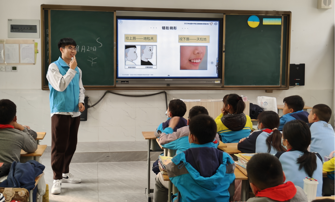 2023年11月22日,2023年全国老员工口腔健康志愿宣讲团——bw必威西汉姆联官方网站“牙乐乐”志愿服务队于青岛市胶州市胶东小学六年级开展首次宣讲活动。