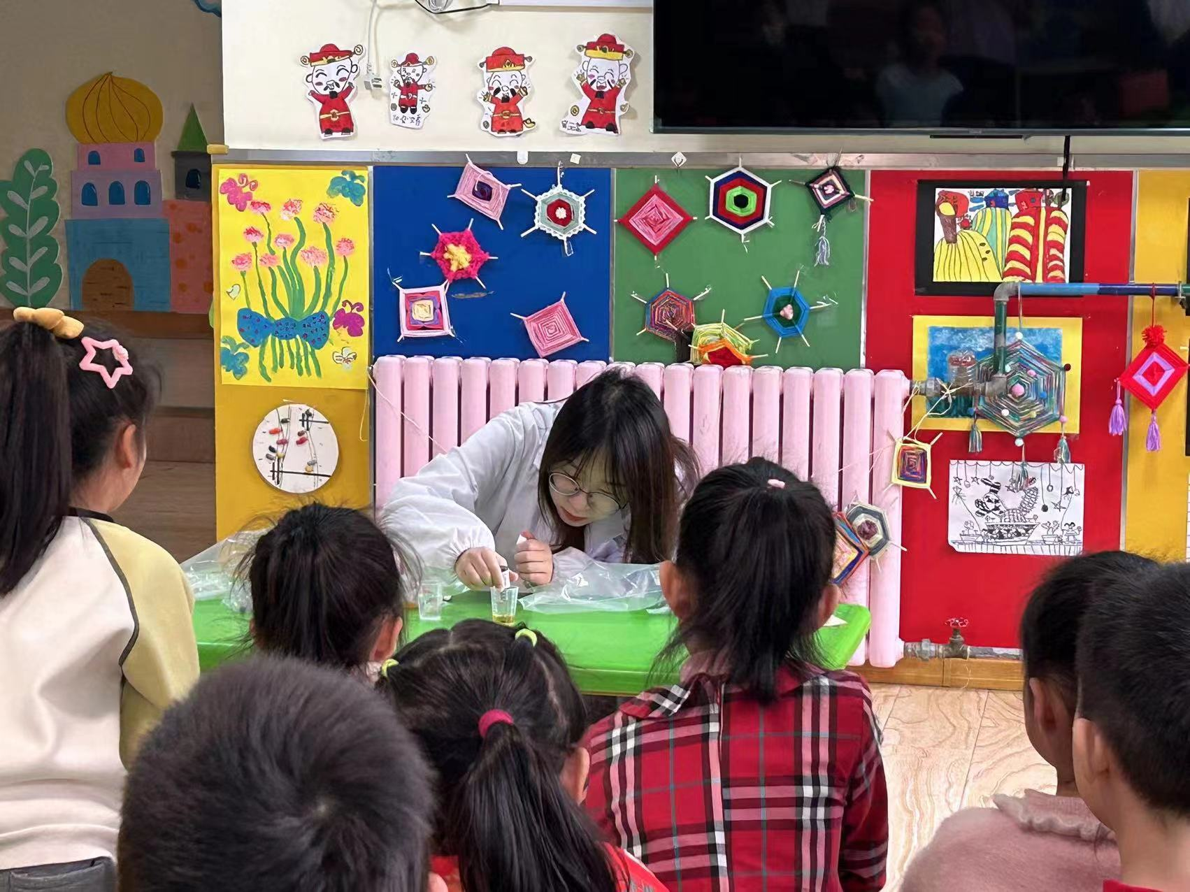 活动伊始,志愿者们在确保安全的前提下向小朋友们展示化学小实验,实验使用牛奶、色素、海藻酸钠等生活中常见的无毒产品,实验现象让小朋友们感受到化学的神奇与魅力。随后,通过提问的方式选出小朋友代表,让他们自己尝试进行化学实验,活动氛围热烈而欢快,了解雷锋的事迹,学习雷锋的精神。