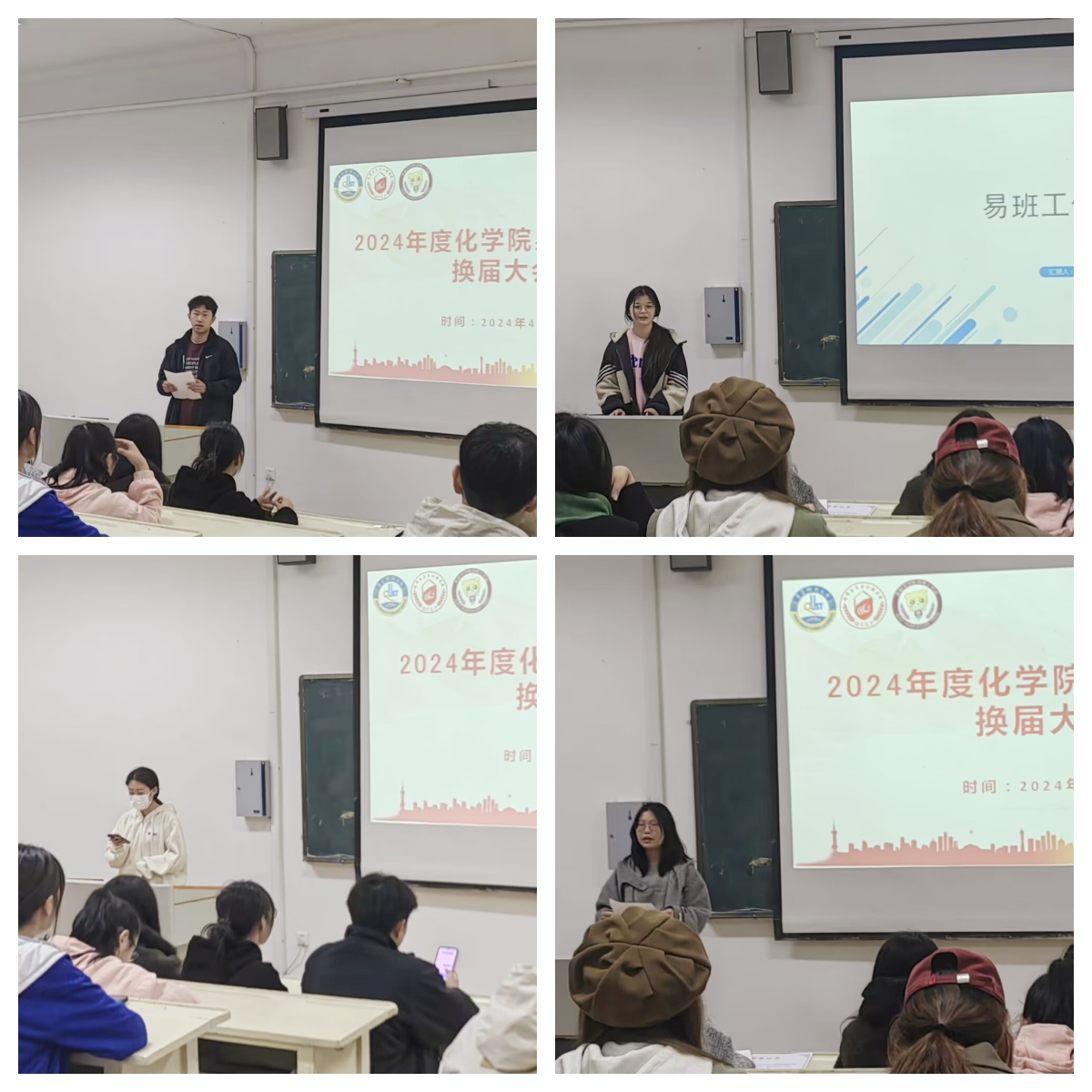 大会在庄严而热烈的氛围中拉开帷幕。首先,上一届易班工作站站长张银浩回顾了过去一年工作站的成绩和挑战。他感谢了所有成员在工作中的辛勤付出,以及公司领导和指导老师对工作站的支持与帮助。他强调了团队合作的重要性,为新成员提供了宝贵的经验和未来发展建议,也表达了对新一届成员的祝福和期待。