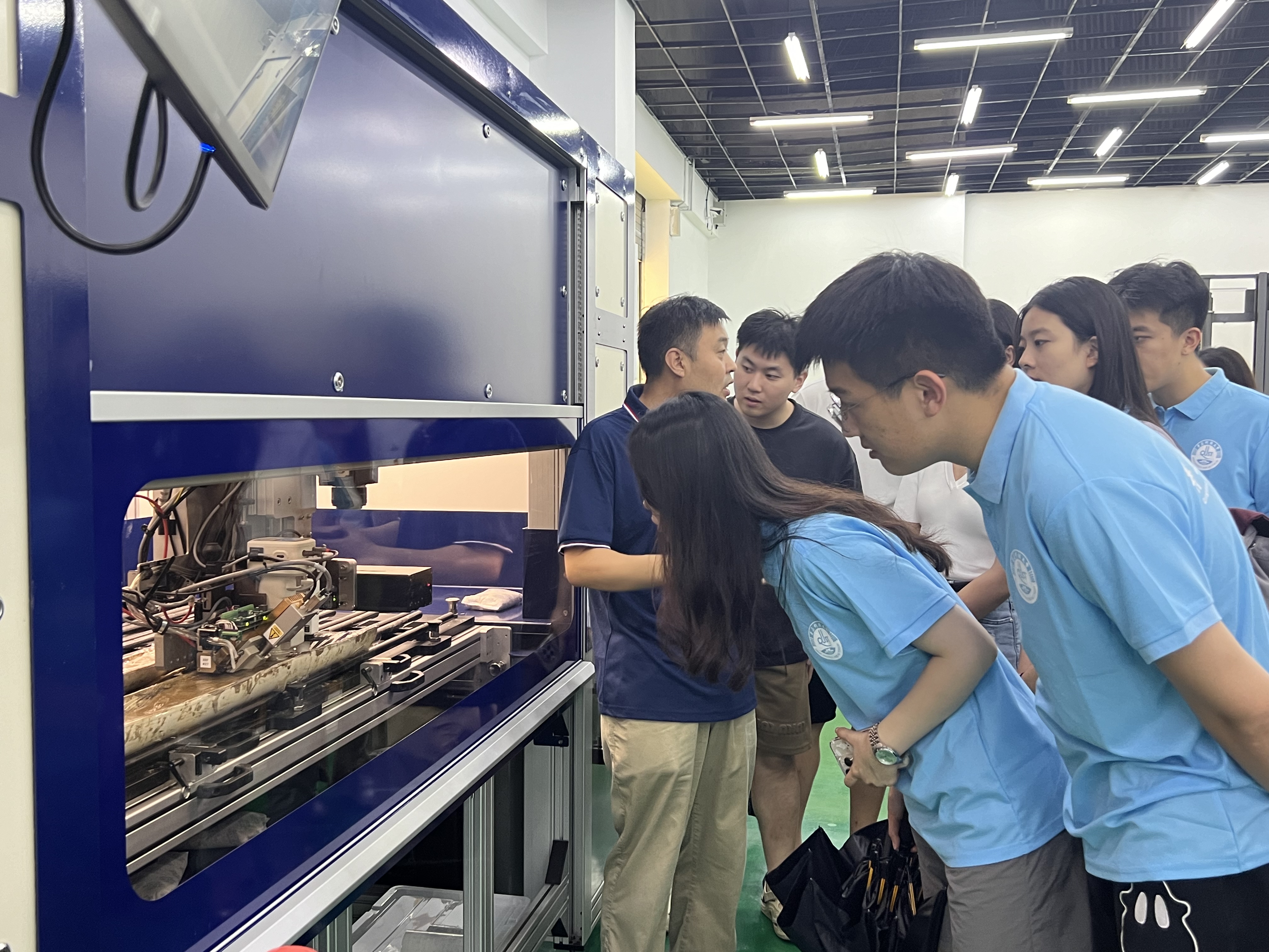 讲座结束后,实践团成员参观了青岛海地所的大洋钻探岩心库。针对化学学科特点,实践团成员深入学习高精度岩心元素扫描仪的操作流程与测试原理,并亲自操作实验设备。参观学习过程中,实践团成员们与研究所的科研人员进行了深入交流,并就当前海洋地质领域的研究热点和难点结合化学专业进行了深入探讨,分享各自的研究成果和经验,共同推动海洋地质研究的进步。