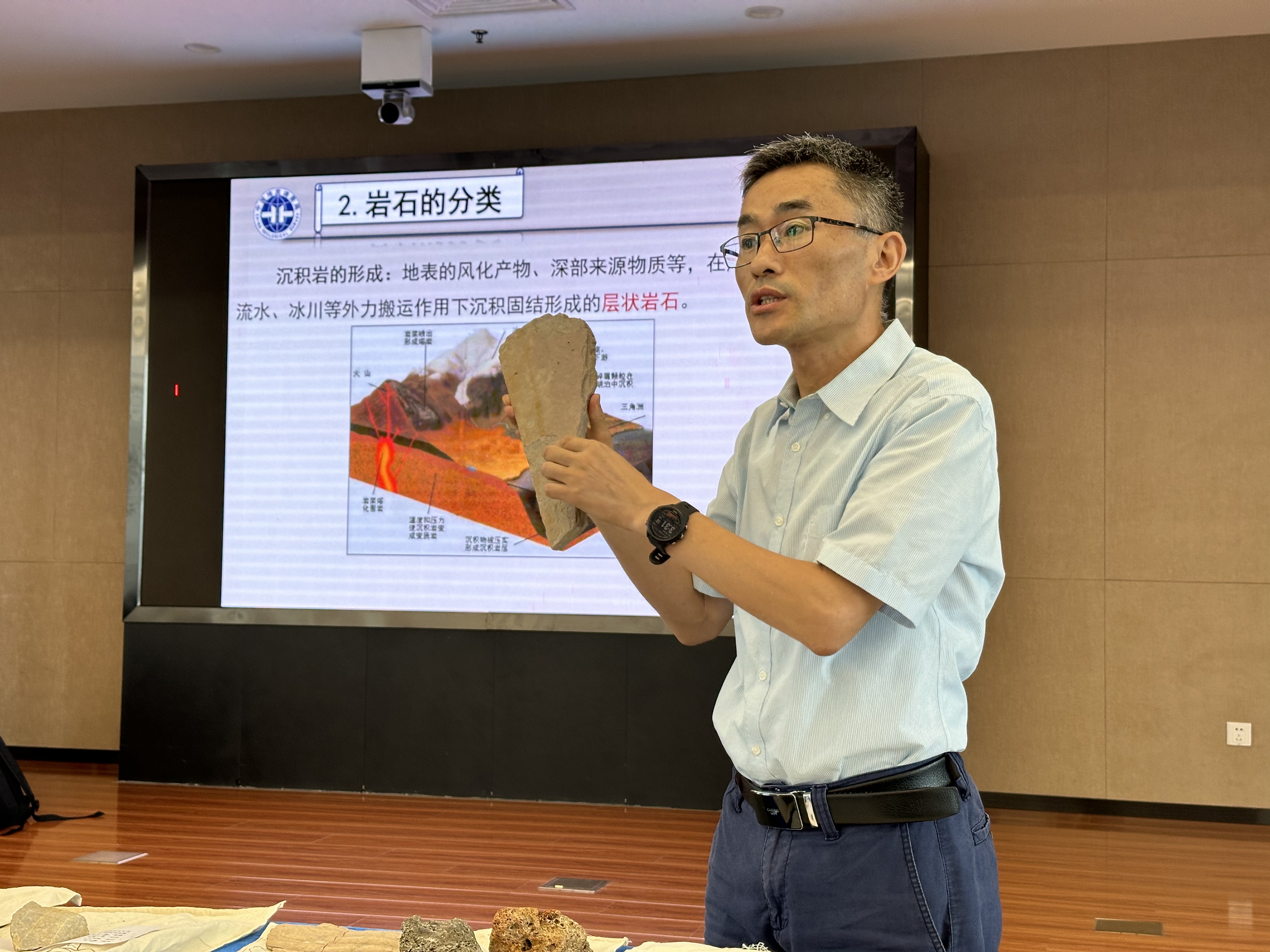 团队凭借青岛市即墨区蓝色科研资源,于23日赴中国地质调查局青岛海洋地质研究所,开展了一场“深耕蓝色国土,加快科技创新步伐”的海洋地质研学活动。授课过程中,青岛海地所专家向实践团成员重点讲解了青岛市海洋地质特点,深入讲授了海底地形、地质构造、矿产资源分布及类型等情况,介绍了中国海洋地质学家在海洋矿产资源的勘探和研究方面取得的重要进展,并向师生展示了部分岩石样品,引起了实践团员工高度关注,激发了员工的浓厚兴趣。