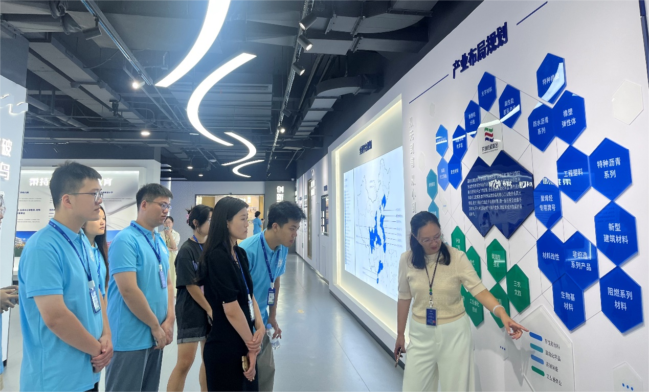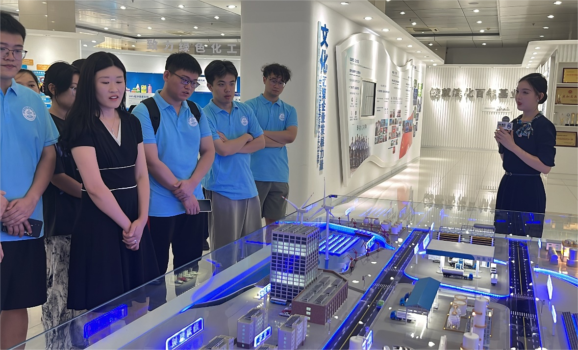 在山东京博控股集团有限公司,企业负责人向观察团成员们展示通过优化生产流程和采用先进的环保技术等手段,降低生产过程中的能耗和排放,实现绿色生产,并了解该公司在化工领域中的绿色低碳转型。